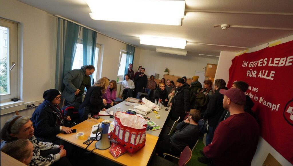 Als nächster Antrag, der zur Diskussion und Abstimmung gebracht wurde, war – unser Vorhaben für den 16.12 zu formulieren und zu präzisieren. Nach einer kurzen Runde der Einschätzungen über die Umsetzungen der Streikplanung für den 04.12 und auch aufgrund des Wunsches aus den unterschiedlichen Standorten, haben wir beschlossen – das der wir am 16.12 ein Vorhaben umsetzen, das in der Zeit von ca 08:00 – ca. 19:00 Uhr stattfindet.
